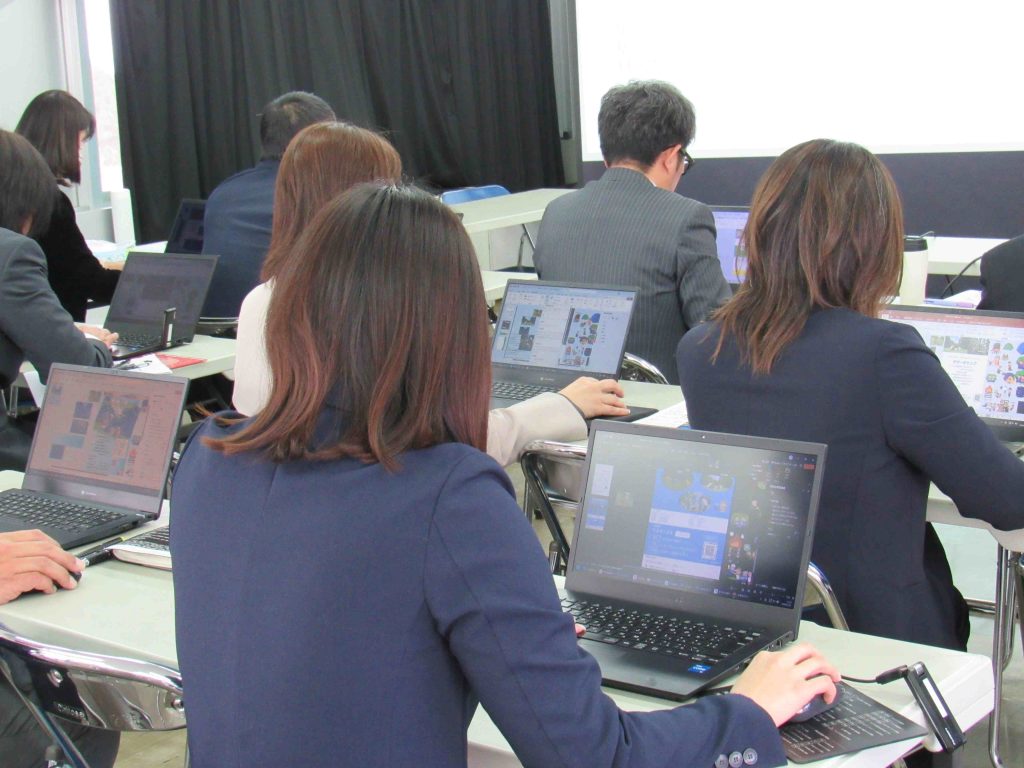 受講者からは「生成AIをほぼ初めて使用したが,指示の出し方のコツを学べたことがとてもよかった。ヒントをもらうという視点ではとてもよいと思ったが,最後は責任を含めやはり,自分だなと感じました。」「フォントや色使いひとつでチラシの印象が変わることがわかった。また,AIの使い方について知ることができた。リテラシーが低いので,すぐには難しいとは思うが,繰り返し使って,自分の作りたいチラシが表現できるようにしていきたいと思う。」などの感想がありました。